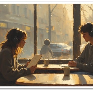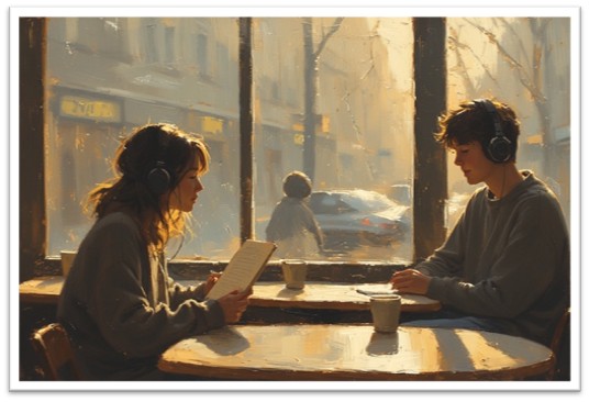Sta lì, a un tavolo da me, con quel maglione troppo grande e le cuffie mezze staccate. Ride da solo a un video, e io vorrei tanto sapere cosa guarda.